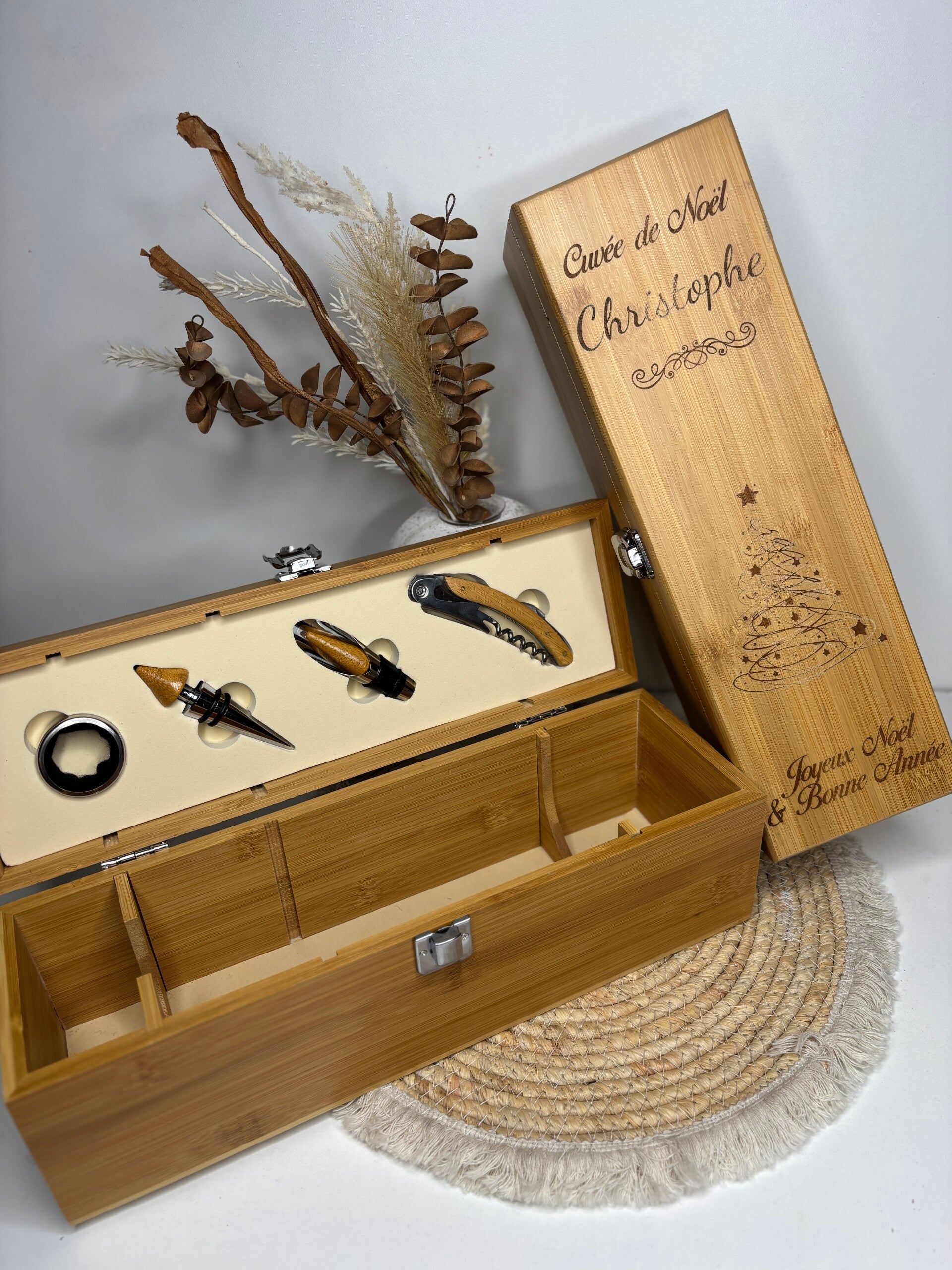 Offrez un moment d’élégance et de plaisir avec ce coffret à vin complet gravé “Cuvée de Noël Christophe”.